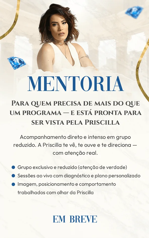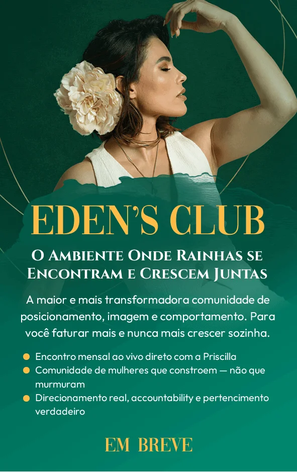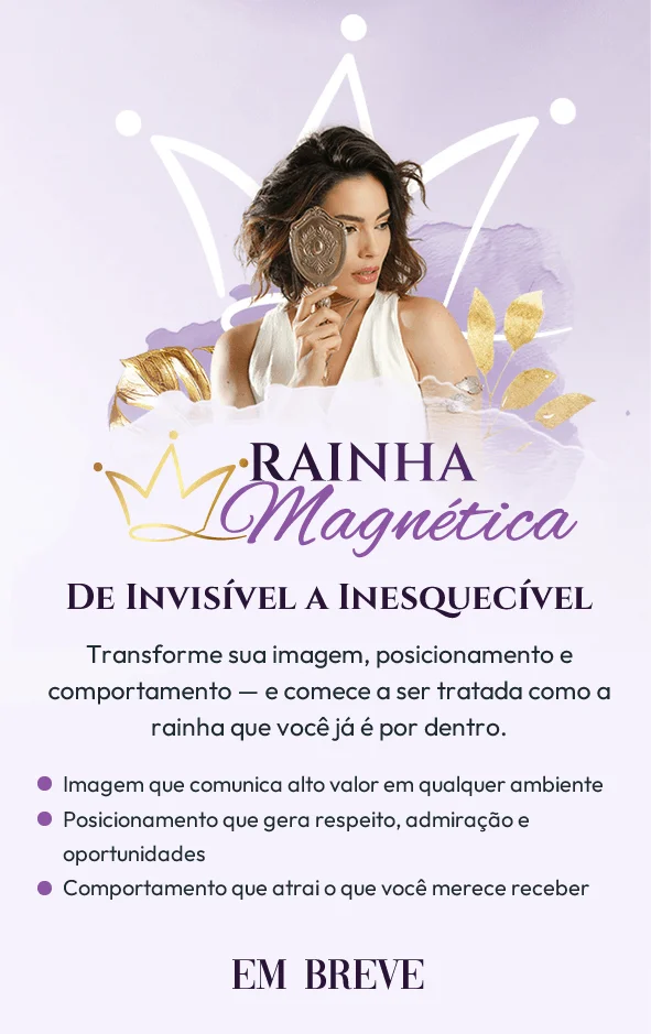 Transformo mulheres em rainhas de alto valor — pela imagem que comunicam, pelo posicionamento que ocupam e pelo comportamento que exercem.